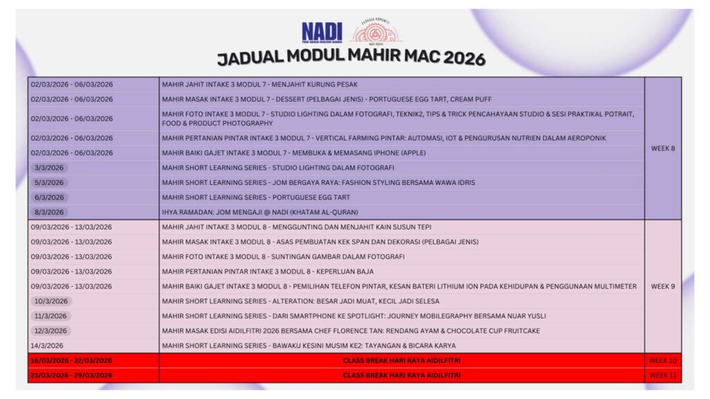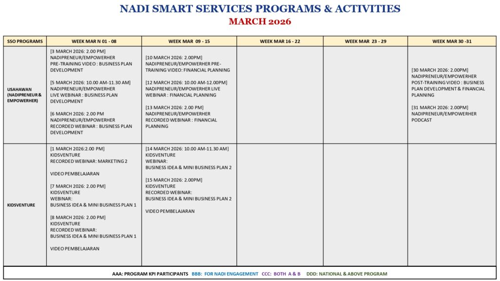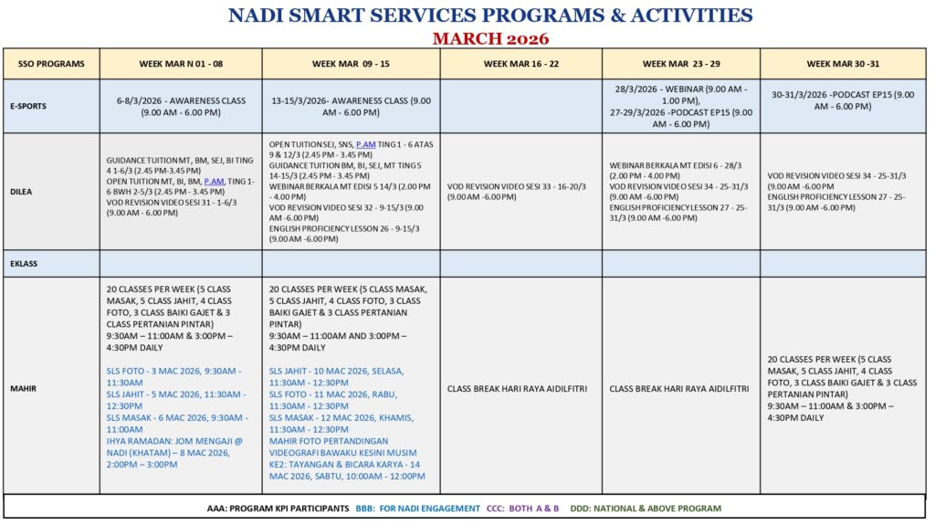 JADUAL PROGRAM SSO MARCH 2026