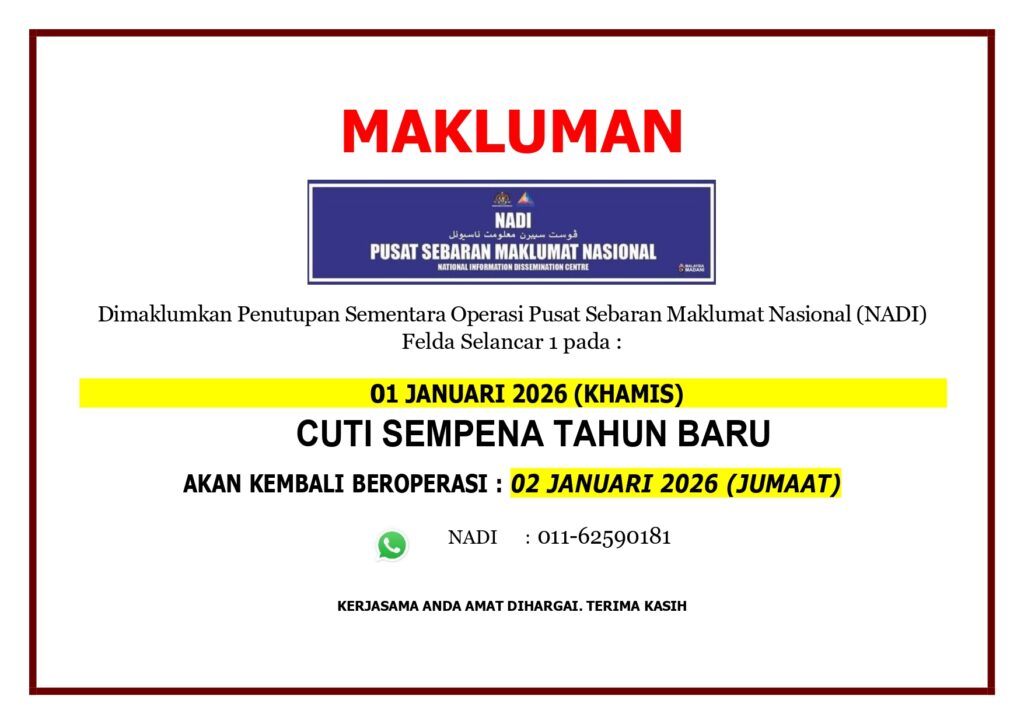 Makluman penutupan sementara operasi NADI Felda Selancar 1 pada 01 JANUARI 2026 (KHAMIS) sempena Cuti Umum Tahun Baru