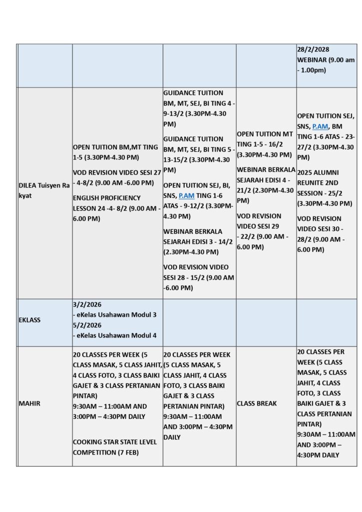 TAKWIN SSO FEBRUARI 2026